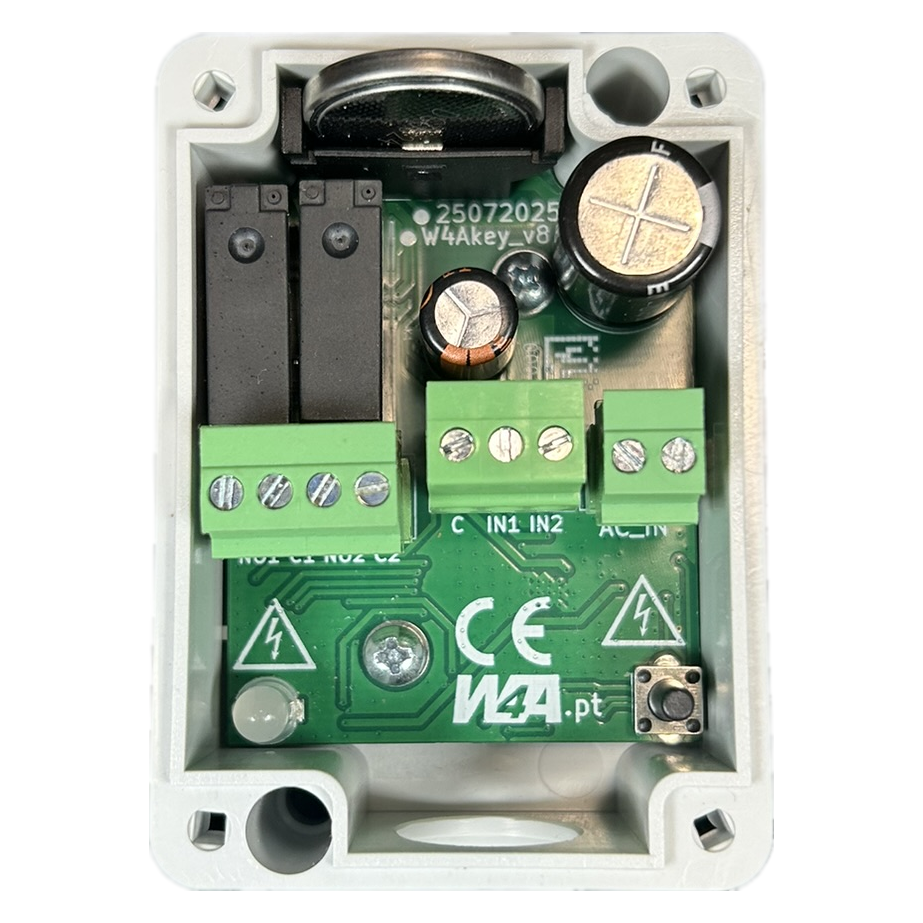 O W4A Key permite a atuação remota via Bluetooth ou Wi-Fi de portões acompanhando em tempo real o seu estado de ativação. A gestão deste acionamento é realizada de forma a que apenas perfis autorizados e autenticados o possam realizar, repeitando as restrições atribuídas e registando todo o histórico de utilização livre de plataformas externas.